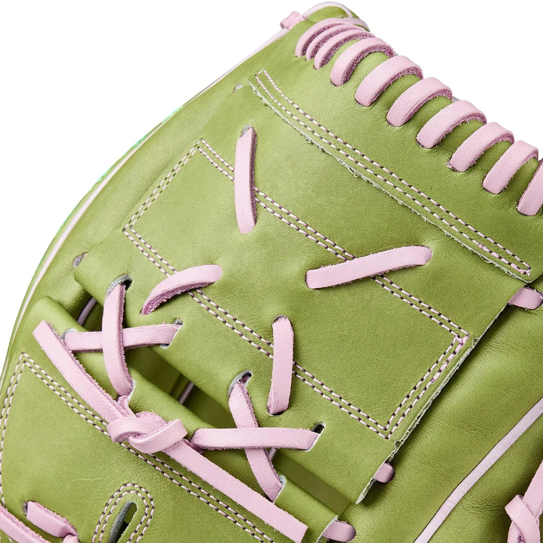 The glove’s full Military Green & Lavender Pro Stock® leather construction offers long-lasting durability and a personalized feel that breaks in beautifully. The Closed Two-Piece Web keeps your pitch grips hidden, allowing you to confidently throw rise balls, changeups, and drop balls without giving anything away. An adjustable drawstring wrist closure delivers a custom, secure fit for total control on the mound.