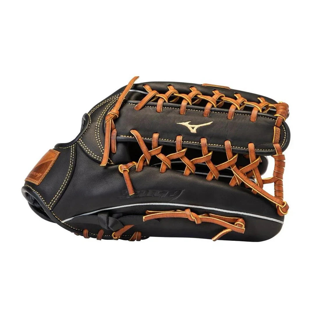 To maximize durability, Mizuno reinforces the Select 9 with professional-grade lacing, the same trusted material found in their top-tier gloves. Finished in a black and brown colorway with a classic leather Mizuno logo, this glove blends tradition with performance.