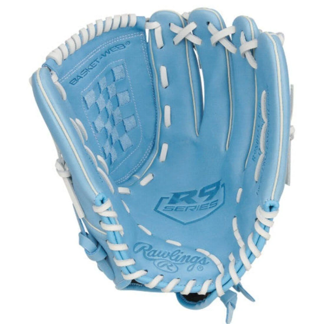 For added impact protection, this glove is crafted with leather-cushioned palm padding, which helps reduce the chances of pesky stings. This R9 glove presents a Basket Web, perfect for either hiding every pitch from the opposition or snagging every line drive in your direction. This glove also features distinctive Columbia blue leather that blends well with the white laces and stitching.